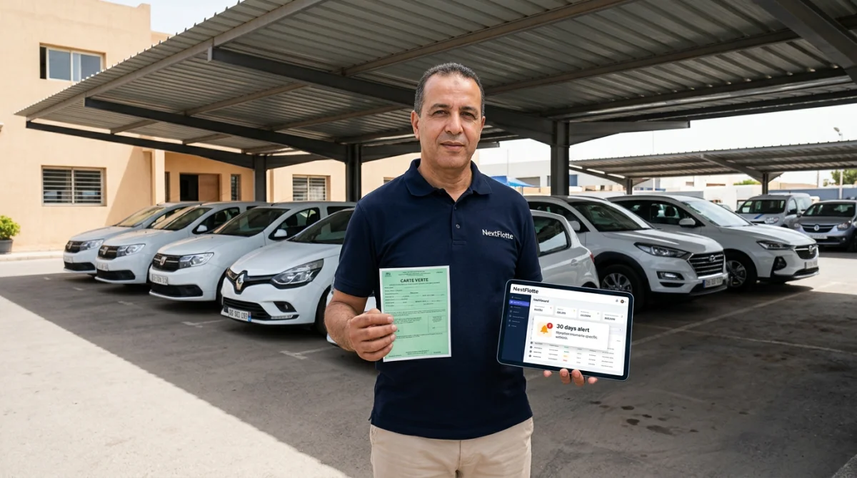 الحل: NextFlotte كيبعث alerts تلقائية 30/15/7 أيام قبل الانتهاء + كيحجب الحجوزات اللي كتمتد بعد التاريخ بلا أي تدخل يدوي من الوكيل.